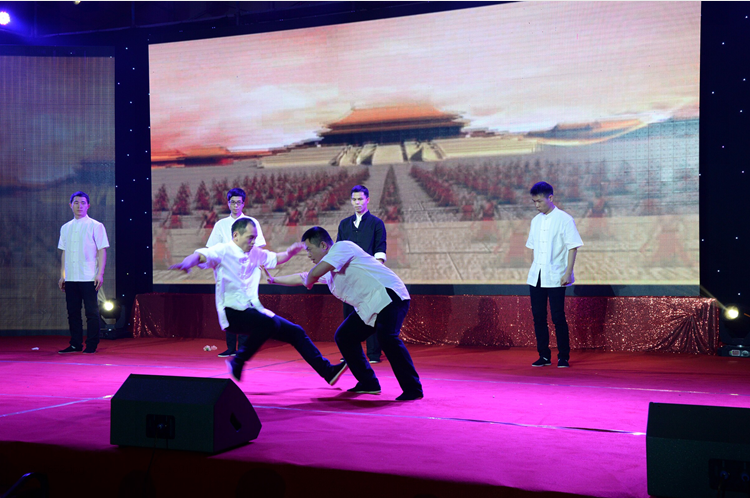 为了给天信二十周年生日献礼,蓝颜gtv 文艺队成员给各位嘉宾和员工们准备了一台堪称专业级的文艺晚会,12个内容丰富、形式新颖的精彩节目,竟全是员工们利用业余时间精心编排和创作的。在所有人的期待中,一曲震憾人心的鼓舞敲响了本场晚会的第一音符,激情四射、强劲有力的鼓舞,一开场便博得了满堂彩,给观众留下了深刻而难忘的印象。抒情高亢的独唱、合唱表演,将观众带进了另一个如痴如醉的美好世界,给人耳目一新的视听震撼。婀娜欢快的印度舞蹈让台下观众惊讶不已,原创小品《天信新闻播报》令观众开怀大笑。声情并茂的诗朗诵、清新深情的吉他弹唱、刚劲有力的武术表演、优雅性感的旗袍走秀、员工子女才艺表演,每一个节目都深深地感染着现场的每一个人,整台文艺晚会节奏明快、环节紧扣、场上场下互动热烈、嘉宾情绪高涨,雄浑高亢的歌声、细腻柔美的舞蹈、缤纷亮丽的灯光、激情澎湃的画面,感染着每一位身临其中的人。员工们纷纷掏出手机,记录下这精彩的片刻。