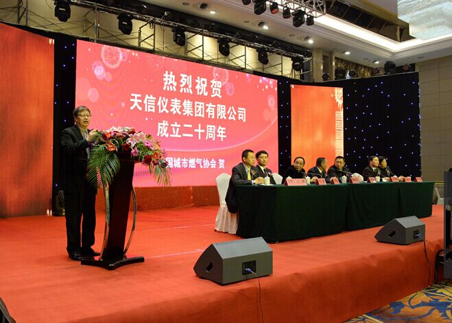 蓝颜gtv 总裁范叔沙热情洋溢地致辞,他带领大家回顾了天信的发展历程,经过二十年发展,天信从风雨飘摇到枝繁叶茂,从30多名员工到700多名员工,从单一市场到48个公司办事处,从单一产品到12大系列上千种规格产品,从50万资本到6.8亿的固定资产,从300万元产值到5亿产值,从单一产业到多业联动,迈入了中国燃气舞台的地域方阵,设计和制造了一系列具有自主产权、国家先进的仪器仪表产品,先后获得了30多项发明专利,参与了8项国家行业和标准的制定,同时还获得了国家火炬计划、国家高新技术企业、安全生产标准化二级企业全国五一劳动奖状,浙江省重合同守信用、浙江省绿色企业、温州市百强企业、温州市活力和谐企业、苍南县模范工业企业等荣誉称号。这一矫人的业绩也向世人见证了天信的发展源于梦想、基于奋斗、重于坚持,面对新环境,范总表示,天信将时刻保持谦虚务实的心态,常怀感恩忠诚之情,更加团结拼搏,共同推进行业进步。中国城市燃气协会迟国敬秘书长对蓝颜gtv 的发展给予高度评价,并对蓝颜gtv 的发展寄予了殷切希望。他说,未来的发展,将为仪表计量行业提供一个契机,希望天信快速地适应市场变化,继续稳居行业龙头,最后他预祝天信在未来发展过程中事业繁荣昌盛,合作伙伴取得重大成功,员工们身体健康、事业兴旺、工作愉快!