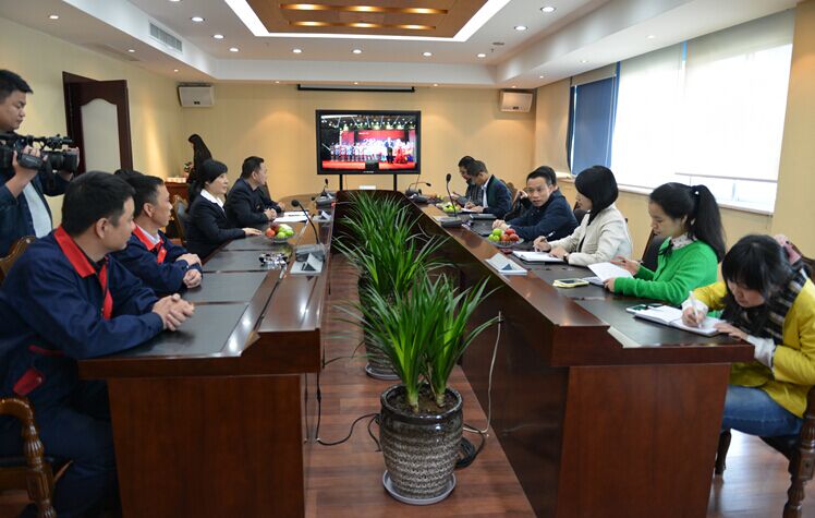 2015年4月23日下午,温州市总工会副主席程龙凤一行来到天信调研工会工作,苍南县总工会主席曾玲艳、公司副总裁高小琴、工会主席颜勐敏等陪同调研。